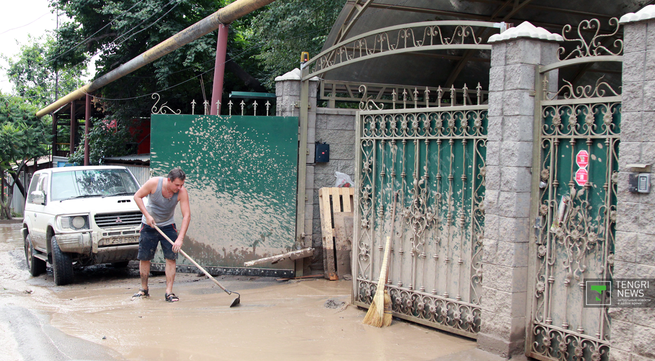 Журналисты Tengrinews.kz подоспели к месту ЧП после рассвета. К тому времени основной поток селя уже спал, и люди начали своими силами восстанавливать порядок. Им помогали подоспевшие на место сотрудники ЧС.