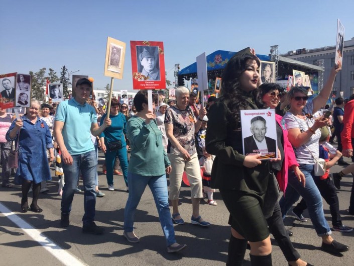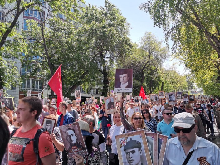 Каждый, кто помнит и чтит своего родственника - ветерана армии и флота, партизана, бойца Сопротивления, труженика тыла, узника концлагеря, блокадника, ребенка войны - 9 мая выходит на улицы города с его фотографией, а если нет фотографии - с его именем, чтобы принять участие в параде в колонне, пронеся транспарант с портретом, именем или фотографию к Вечному огню.