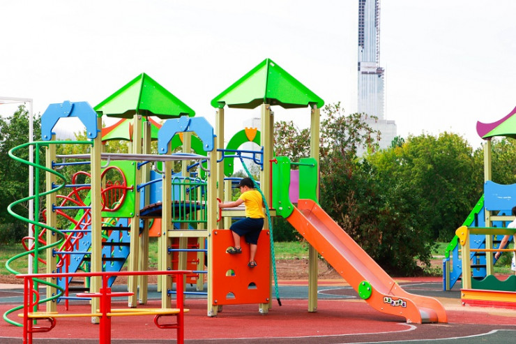 Детская игровая площадка с зонами отдыха, теневые навесы, зона workout, 13 зон для пикника.