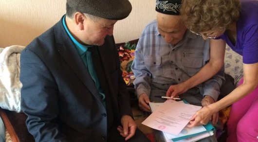 Тем временем, в Павлодаре проголосовал старейший казахстанский ветеран ВОВ - 107-летний Бухариден Серимов.