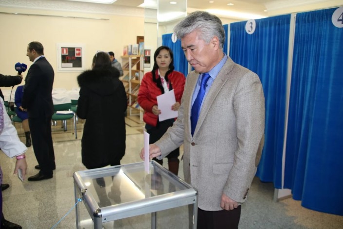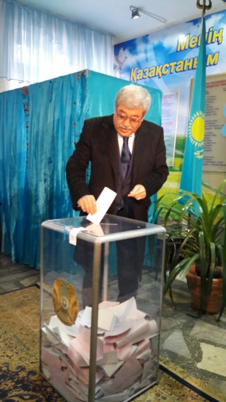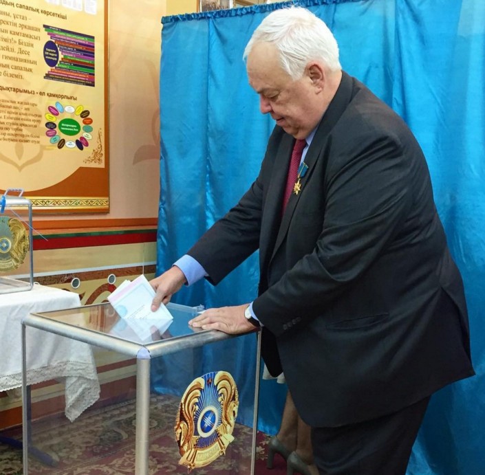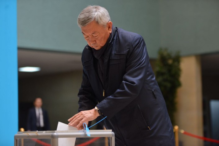 Экс-глава КНБ, сенатор Нуртай Абыкаев проголосовал на избирательном участке №81.
