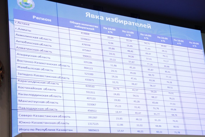 По данным ЦИК, явка избирателей на 16.00 по времени Астаны составила 71,78 процента.