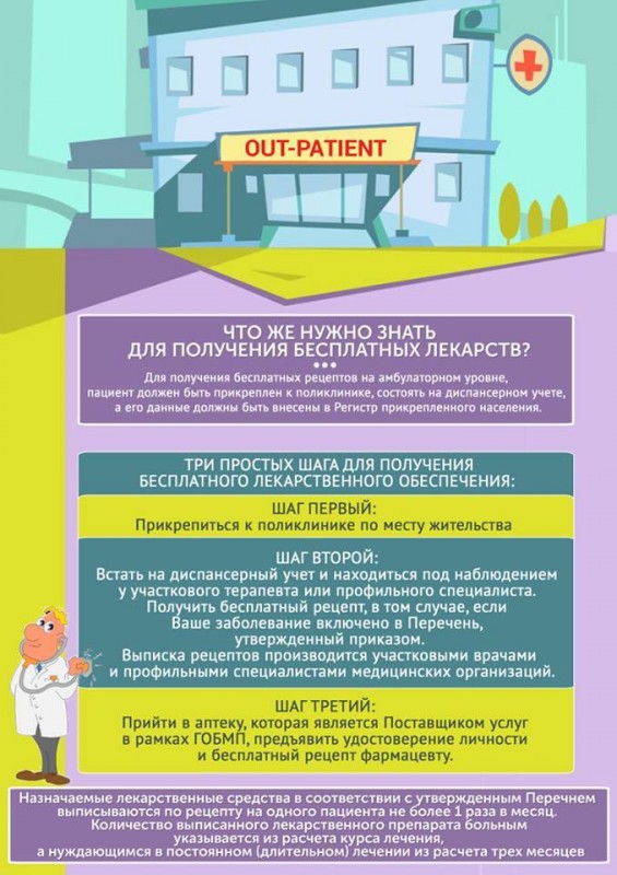 "Для получения бесплатных рецептов на амбулаторном уровне пациент должен быть прикреплен к поликлинике, состоять на диспансерном учете, а его данные должны быть внесены в Реестр прикрепленного населения", - сообщается в инфографике, опубликованной на официальной странице Минздрава в Facebook.