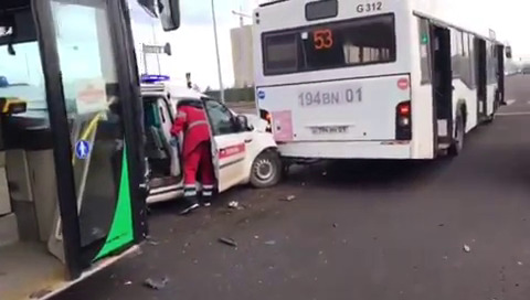 "В 09.19 на пульт дежурного поступил звонок, что произошло крупное ДТП, что есть много пострадавших. Первой была определена на вызов ближайшая машина. Диспетчер увидела по GPS машину, которая находится практически в этой зоне. В тот момент мы еще не знали, что она тоже попала в ДТП. По счастливой случайности в одном из автобусов проезжала наша фельдшер, которая возвращалась с работы домой. Она вышла и тоже начала оказывать помощь вместе с нашими пострадавшим фельдшерами. Они остановили кровотечение, ввели все противошоковые препараты и дождались бригаду. Первая бригада прибыла на место через три минуты, они транспортировали самого тяжелого пациента во вторую больницу", - сообщил Тимур Муратов.