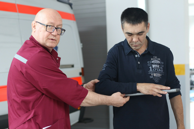 В профессиональной практике мы используем шины - средства для фиксации конечности. К примеру, сейчас у нас на  вооружении имеются, наряду с традиционными шинами Крамера и Дитерихса, армированные и неармированные пневмошины:  мы погружаем конечность в полиэтиленовый чехол, наполняем его воздухом, создавая тем самым избыточное давление вокруг поврежденной конечности, и надежно фиксируем ее.