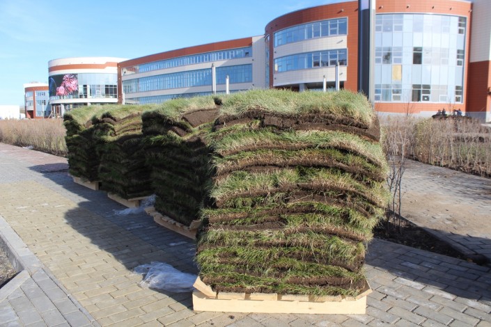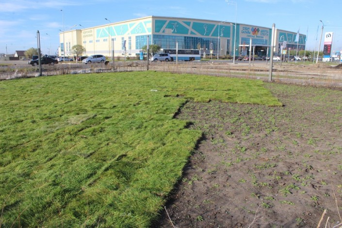 Готовят к открытию новый Дворец школьников, где встретятся президенты Казахстана и России, -отмывают, благоустраивают территорию, укладывают газон, высаживают деревья, мостят плиткой дорожки.