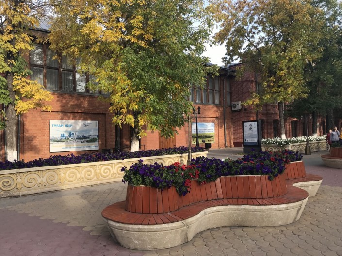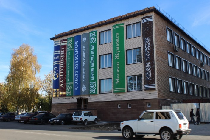 Оригинально оформили фасад областной библиотеки имени С. Муканова - торцевая стена представлена в виде книжной полки, где по соседству с произведениями казахских писателей Габита Мусрепова, Шокана Уалиханова, Магжана Жумабаева, Сабита Муканова и Абая стоят томики Александра Пушкина и Ивана Шухова.
