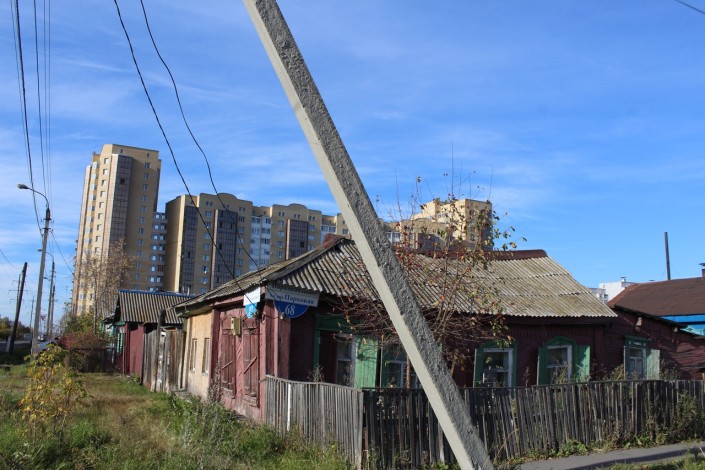 А вот задворки главной магистрали - улицы Горького и Парковая - остаются неухоженными, отмечает издание. Там, где кортежи не поедут, в нескольких метрах от шика и блеска окрашенный фасад многоэтажки контрастирует с облезлыми стенами, на фоне новостроек стоят полуразвалившиеся частные дома.