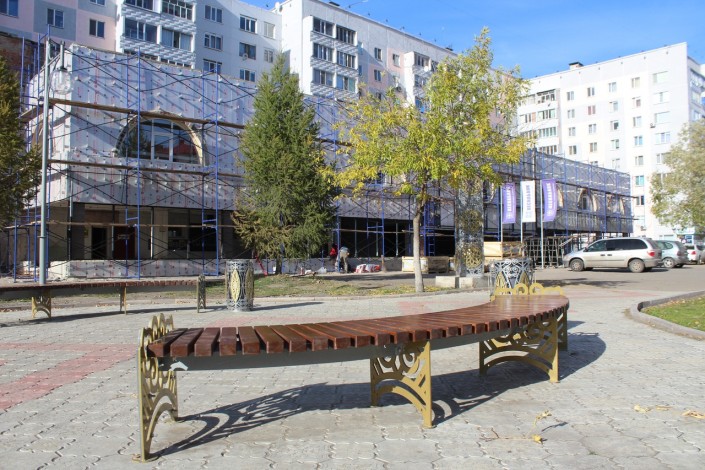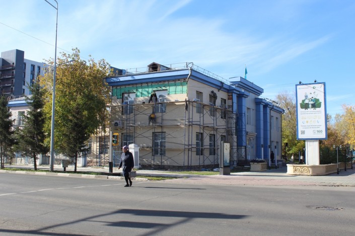 Со зданий сдирают некогда модный алюкобонд. Его меняют на современный натуральный камень - травертин. Им облицовывают гостиницу "Скиф", Дом дружбы, вокзал, акимат города, некоторые магазины и офисы.