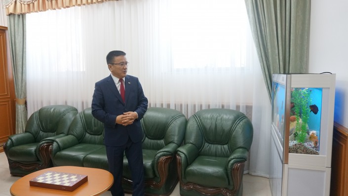 "Это зал ожидания. Мы его продумали в таких светлых, домашних тонах. Удобно, аккуратно, тепло, предусмотрены все бытовые моменты. Рядом консультант, который предоставит нужную информацию, телевизор есть, шахматы, можно партию сыграть, пока ждешь, - это все рекомендации психологов. В такой обстановке должны быть такие атрибуты. Я тоже с этим согласен", - отмечает Нурсерик Шарипов.