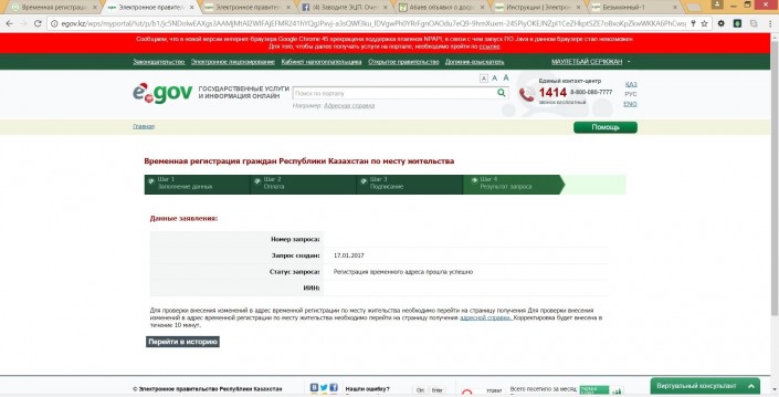 Наконец появится сообщение с результатом услуги: "Регистрация временного адреса прошла успешно".