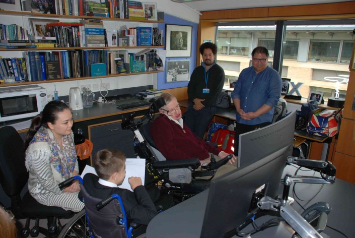 Как пишет Гульнар Бажкенова, встреча мальчика с профессором состоялась в Кембридже, в служебном кабинете профессора Стивена Хокинга.