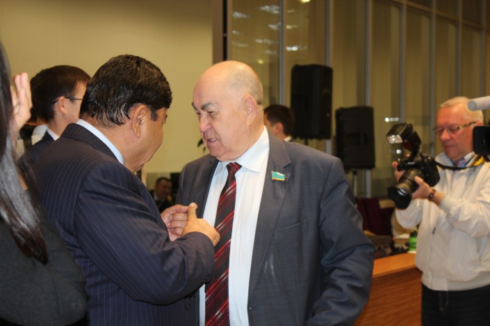 Депутат Мажилиса Парламента (фракция КНПК) Владислав Косарев (справа) со своим бывшим коллегой экс-депутатом, а ныне фермером Темирханом Досмухамбетовым.