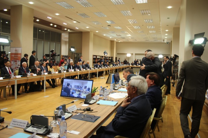Как отмечалось ранее, в комиссию вошли 75 человек. Это представители различных политических партий, политологи, представители сельскохозяйственной сферы, правительства и Парламента. Участники сегодняшнего заседания прибыли к 10 часам утра в Национальный музей Казахстана.