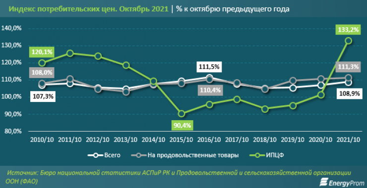 В октябре уровень инфляции в Казахстане достиг 8,9 процента, и больше всего на нее повлияли именно продукты. Продовольственные товары выросли в цене на 11,3 процента за год (на 8,2 процента с начала года).