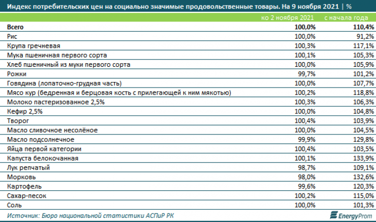 В ноябре рост цен на социально значимые продовольственные товары в Казахстане остановился. За первую неделю месяца по корзине в целом удорожания не было, но на 8 из 19 товаров цена поднялась на 0,4 процента, а еще на пять товаров - на 1-2 процента, передает Tengrinews.kz со ссылкой на Energyprom.kz.