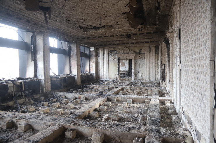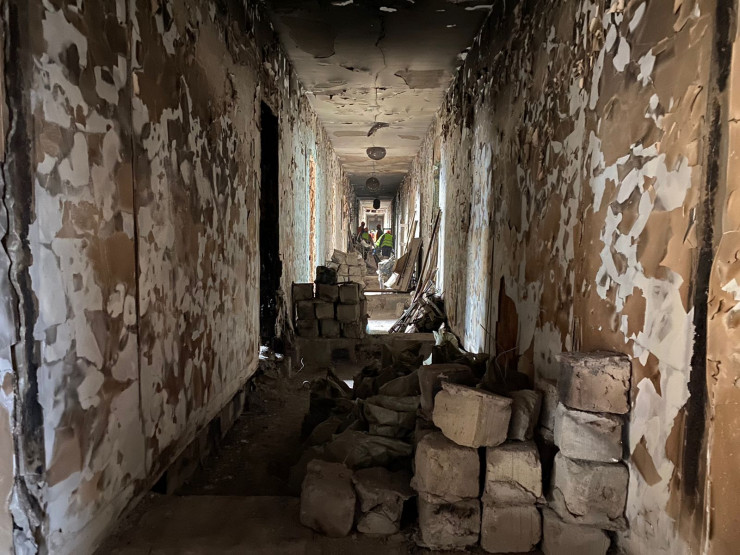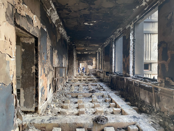 По данным ведомства, на данный момент внутри здания проводится расчистка помещений от последствий пожара. На это уйдет около двух-трех дней. В работе задействованы около 20 частных строительных компаний, которые вызвались бесплатно предоставить свою помощь.