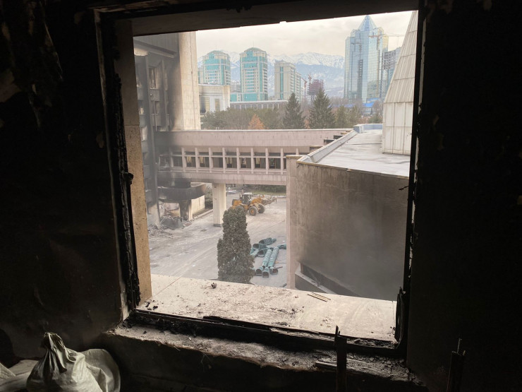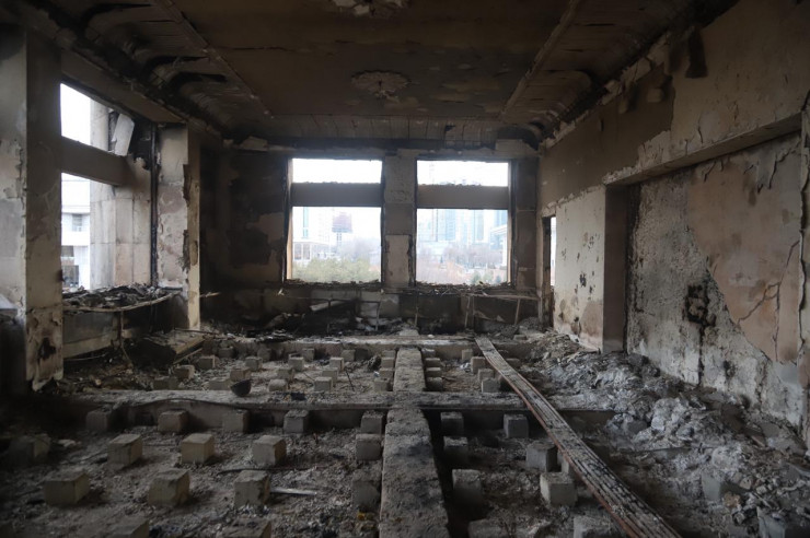 "Здание городского акимата было наиболее подвержено разрушению в ходе мародерства и беспорядков. Поэтому мы полностью будем восстанавливать его. Объем работы достаточно большой. Вы знаете, что в течение двух дней конструкции здесь были подвержены тепловой нагрузке, здесь был пожар. Сейчас все несущие конструкции должны быть открыты, чтобы провести техническое обследование", - сказал руководитель управления Сапар Нурашев.