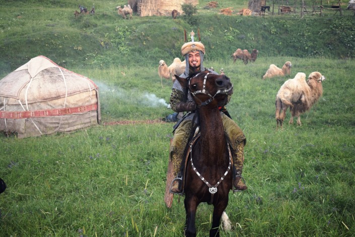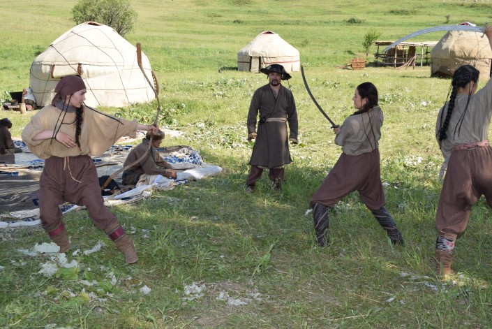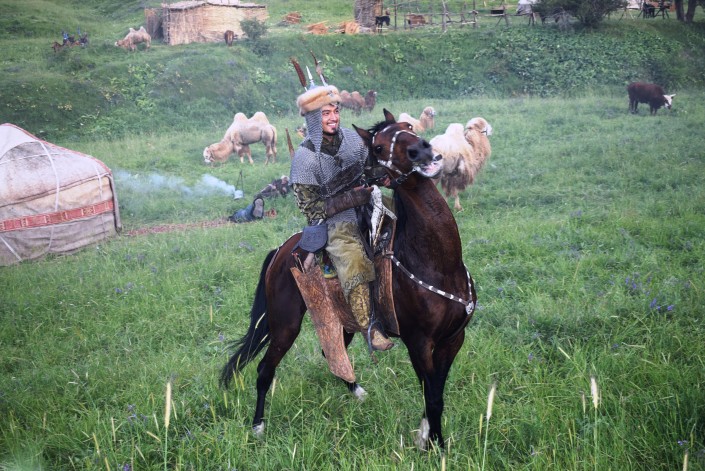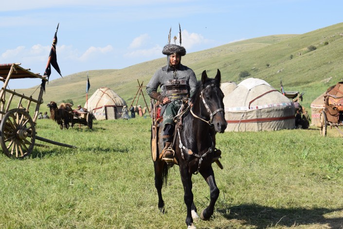 "Во втором сезоне мы сделали упор на шатры. Они делают кадр краше. Весь реквизит сделан на основе исторических материалов в Алматы. В первом сезоне мы сделали массовочные сабли из пластика, так как участвующие в массовке люди не владеют навыками фехтования и могут пораниться. Их также мы используем во втором сезоне, но 50 процентов пришлось делать заново. Каждому главному герою отреставрировали военный реквизит. Эскизы конной экипировки нарисовали мы, дали размеры коней, а сшили их в Китае", - рассказал один из художников-постановщиков картины Мурат Карипов.