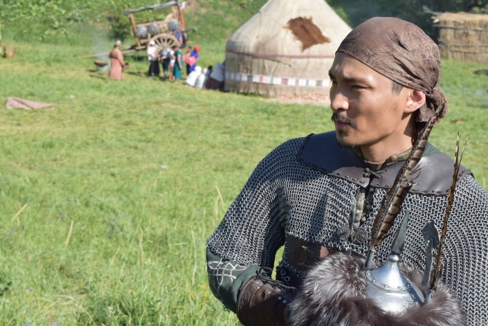 "Никуда специально мы не ездили. Ткани тоже были приобретены на местном рынке в Алматы. Кожа - как основной фундамент военного костюма. Массовочный военный костюм у нас был разбит на несколько группировок. Это тимуриды, шайбаниды, казахи, ногайцы. Изготовлены нашими местными подрядчиками. Костюм казахского всадника более плотный. Детализированный доспех с юбками, наручами, ремнями и кожаным плащом. Получился цельный образ. Костюмы были выделены по цветовой гамме. Казахские костюмы в коричнево-бежевых тонах, а костюмы шайбанидов и ногайцев выдержаны в серой гамме. Все костюмы стараемся делать не отходя от исторической достоверности", - поделилась Ажар Аубакирова.