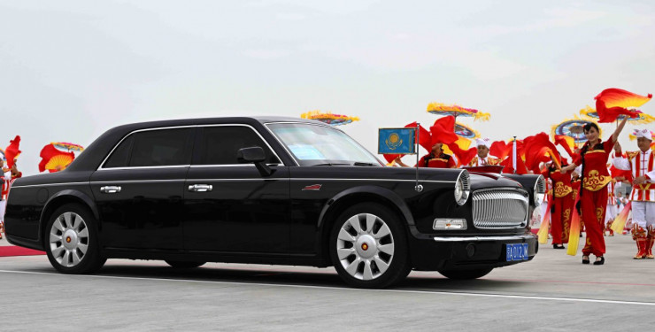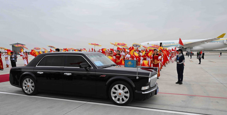 К прибытию Касым-Жомарта Токаева в аэропорту стоял автомобиль марки Hongqi. Китайский бренд принадлежит государственному концерну FAW и выпускает автомобили для правительства с 1958 года. На похожем лимузине передвигался Си Цзиньпин.