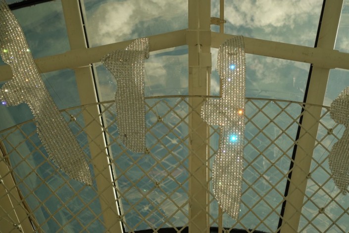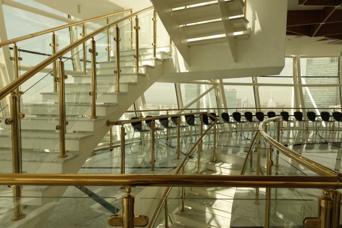 Кроме того, в стволе лифтовой шахты теперь установлены двойные стеклопакеты с энергосбережением, чтобы уменьшить затраты и потери тепла. Здесь, по задумке архитекторов, использовался специальный структурный силиконовый герметик, который работает в широком диапазоне температур, чтобы стекло в дальнейшем не трескалось.
