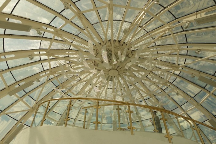 Треснувшие стеклопакеты купола заменили на новые, более крепкие. Изготовленные по итальянской технологии стеклянные витражи должны прослужить долго и выдержать аномальные морозы и шквалистый столичный ветер.