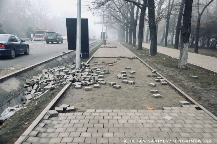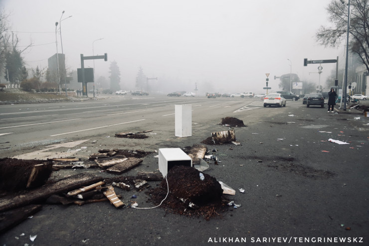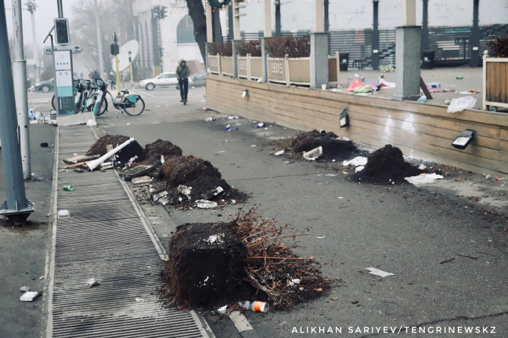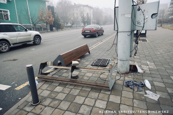 Фотокорреспондент Tengrinews.kz побывал в районе площади Республики, акимата Алматы и резиденции Президента на следующий день после погромов.