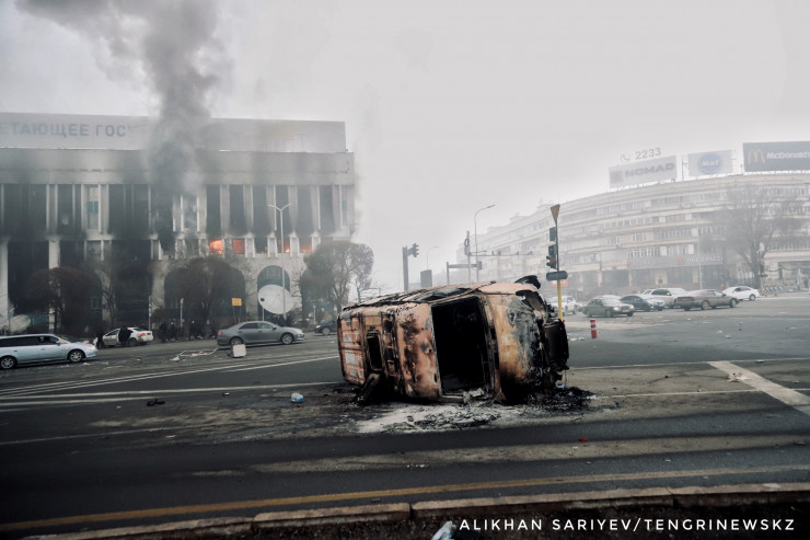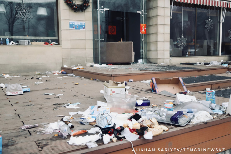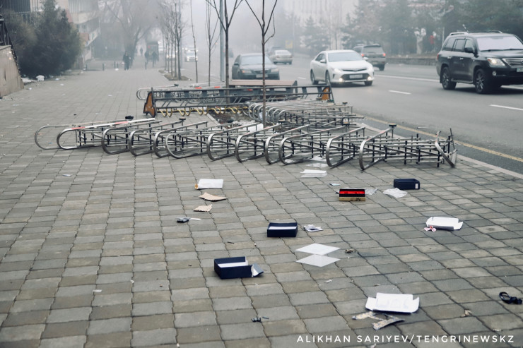 Фотограф нашего издания Алихан Сариев 6 января в 13:40 побывал в районе площади Республики и зафиксировал последствия погромов, произошедших 5 января.