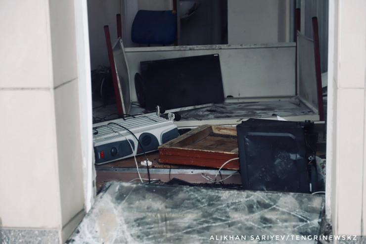 Корреспондент отметил, что магазины, расположенные на проспекте Назарбаева и ниже площади, были разграблены мародерами.