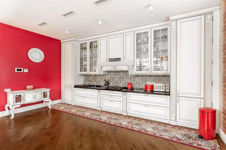 Дом кирпичный, трехуровневый. Площадь - 1900 квадратных метров. В объявлении говорится, что недвижимостью занимался ведущий дизайнер столицы и архитектор, который использовал сочетание "классицизма и западного модернизма". Территория виллы полностью закрыта, имеется видеонаблюдение.