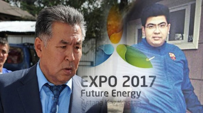 Первый скандал, затронувший интересы выставки, разгорелся в конце 2013 года, когда в Алматы произошло ДТП с участием сына руководителя департамента строительства АО "НК "Астана ЭКСПО-2017" Кажимурата Усенова. Максат Усенов на автомобиле BMW X6 на высокой скорости сбил шесть человек, стоявших на тротуаре. Один из пострадавших погиб. Виновник аварии примирился с семьей погибшего и не понес за это наказания. При этом его наказали арестом на 45 суток за нанесение среднего вреда здоровью других потерпевших.
