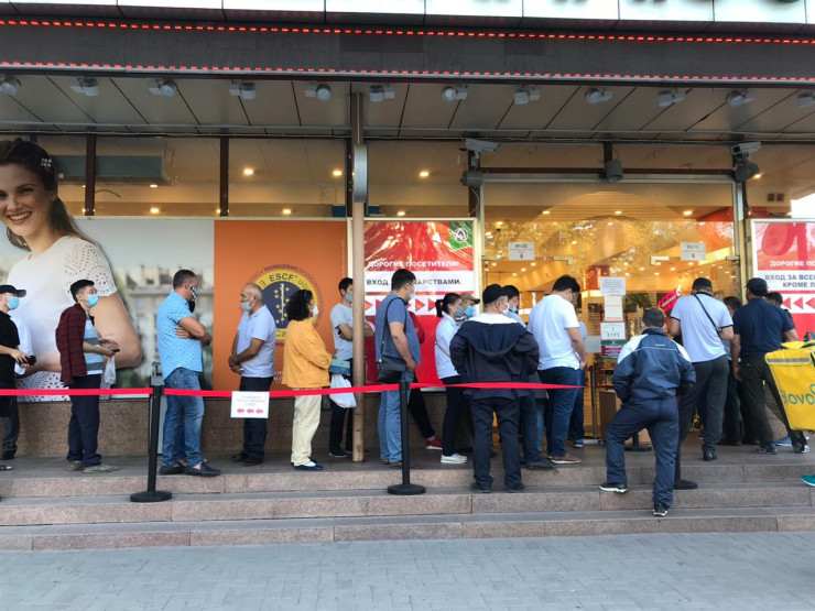 Айта кету керек, кезекте тұрғандар 2 метр қашықтық сақтау керегін ескермеген.