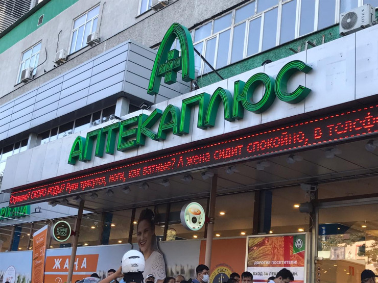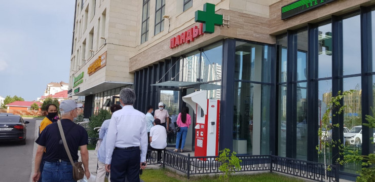 Ал "Аптека плюс" дәріханасының алдында адам қарасы көп. Кезекке тұрдық.