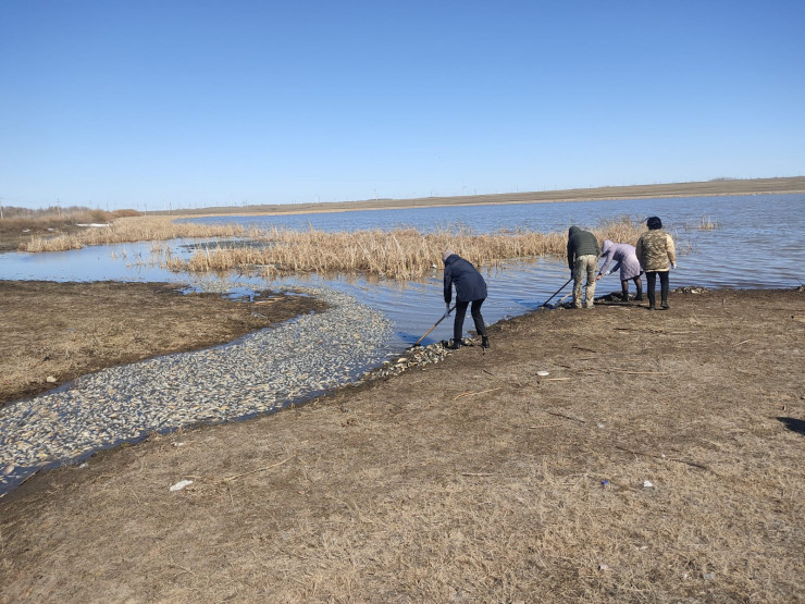 Рыбу до сих пор вылавливают и собирают специалисты инспекции. Поэтому общий вес еще увеличится на сотни килограммов. Мертвую рыбу выбрасывает к берегу, расположенному недалеко от села. По словам местных жителей, летом водоем используют как водопой для скота.