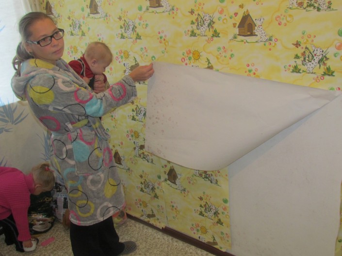 Квартиру семье выдали в 2014 году, но сюда они заехали через год, потому что они сразу заметили, что восстановление жилья в доме происходило с явными нарушениями.
