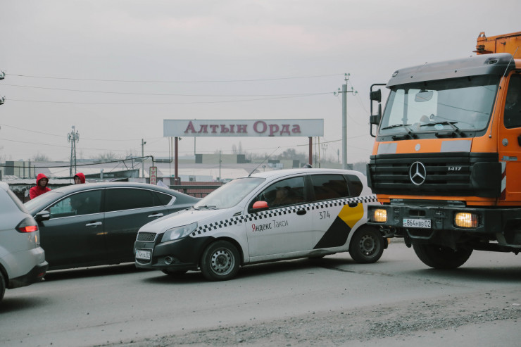 Ситуация возле блокпоста в районе рынка "Алтын Орда". Время около 12.00.