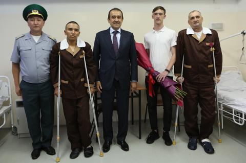 Также, глава КНБ пожелал 19-летнему военнослужащему срочной службы Данияру Онербай скорейшего выздоровления и вручил корзину фруктов с конфетами.