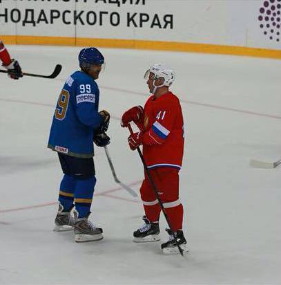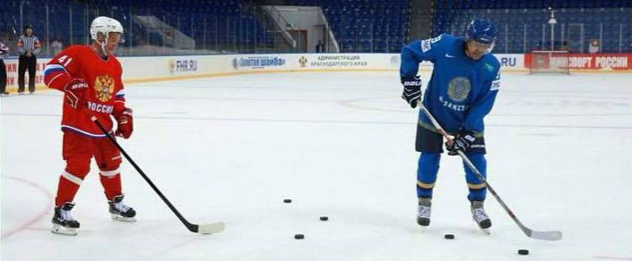 "На тренировке с Председателем Правительства РФ Д.А. Медведевым перед товарищеским матчем команд Казахстана и России по хоккею. Ледовая арена "Шайба", Сочи, 11 августа 2016 года", - подписал снимки глава казахстанского правительства. На одном из фото премьер-министры в хоккейной форме с клюшками позируют на льду.