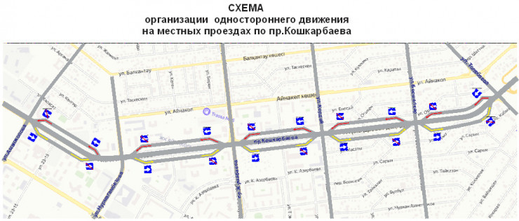 Подчеркивается, что нововведение сократит "число конфликтных точек", позволит "более рационально использовать полосы проезжей части" и сделает движение на участке проспекта Кошкарбаева более безопасным.