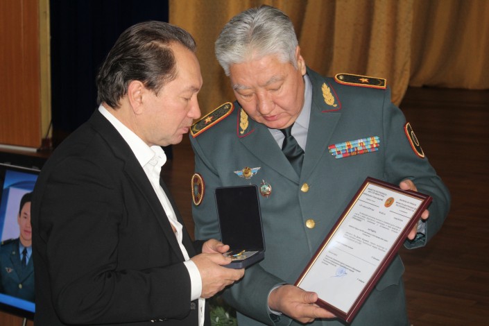 Награждение прошло в воинской части Нацгвардии, в которой служил фигурист. Награду родителям спортсмена вручил заместитель Главнокомандующего Национальной гвардией Республики Казахстан по воспитательной и социально - правовой работе генерал-майор Мухометкали Сатов.