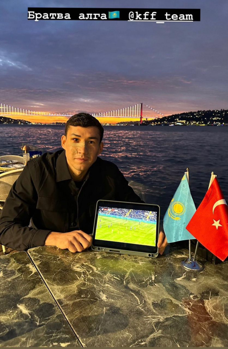 Ждем второй тайм. Звезда сборной Казахстана Бахтиер Зайнутдинов не играет из-за травмы, но он "вместе с казахстанцами"!