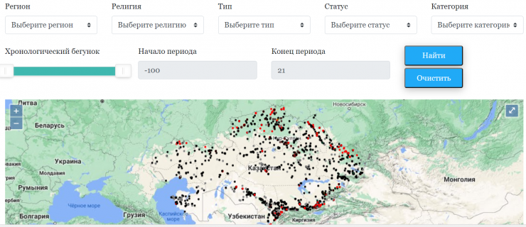 "К примеру, можно визуализировать религию в Казахстане. Система фильтров позволяет увидеть физически, как ислам распределен по территории страны, где плотность мечетей выше, на каких меньше, где находится самая старая мечеть, где в последние годы происходил наиболее бурный рост строительства мечетей.