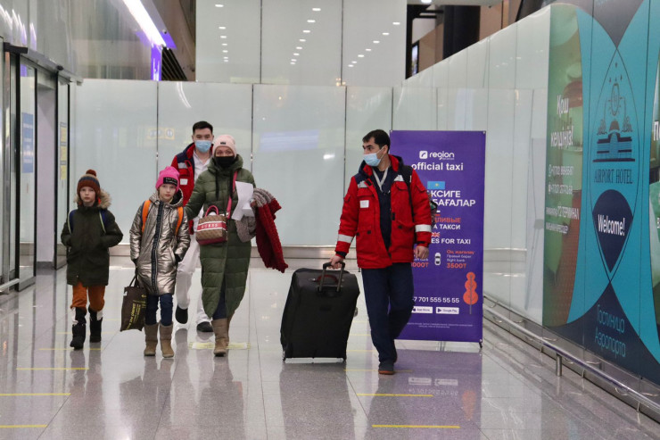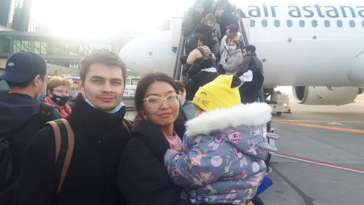 Казахстанцев сначала эвакуировали с территории Украины в Польшу. Самолет "Эйр Астаны" вылетел из города Катовице в 21.55 по столичному времени и прибыл в аэропорт Нур-Султана в 02.54. На борту находился 131 пассажир, включая 20 детей, проинформировал пресс-секретарь столичного аэропорта Анвар Шалекенов.