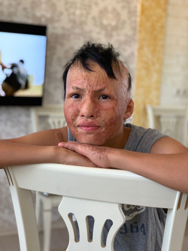 "У него ожог 3-й степени. Нам провели шесть операций, две на руки, четыре на лицо. Операции проводили в Астане, в Центре матери и ребенка, потом в Туркестанской области в турецкой клинике, потом в Шымкенте. У него обгорела вся голова и обе кисти руки, был деформирован рот. Нам сделали операции по пересадке кожи с бедра на лицо и руки. Больше нам ничем помочь не могут. Нам просто отказали, сказали, у нас такие операции не делаются", - делится мама мальчика.