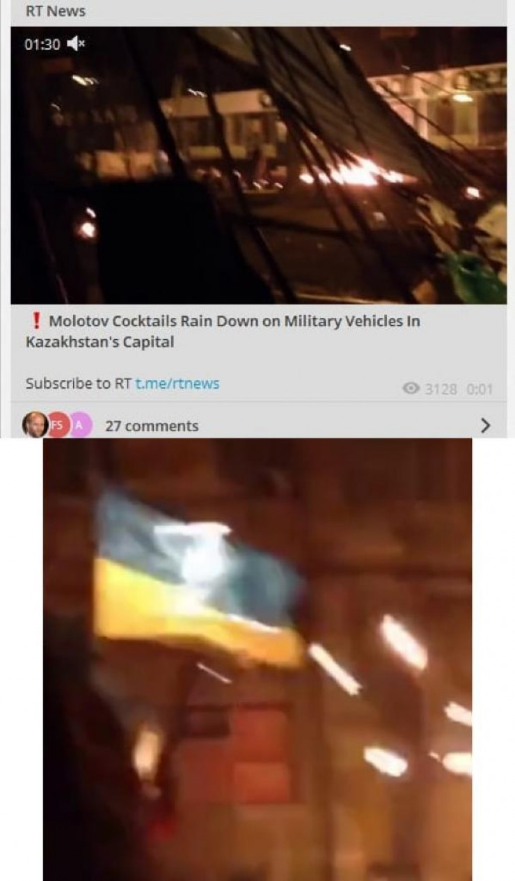Telegram-арналарда Қазақстанда наразылық білдірушілер бронтранспортерлерге жанатын қоспасы бар бөтелкелер лақтырғаны туралы хабарламасы бар видео тарады.