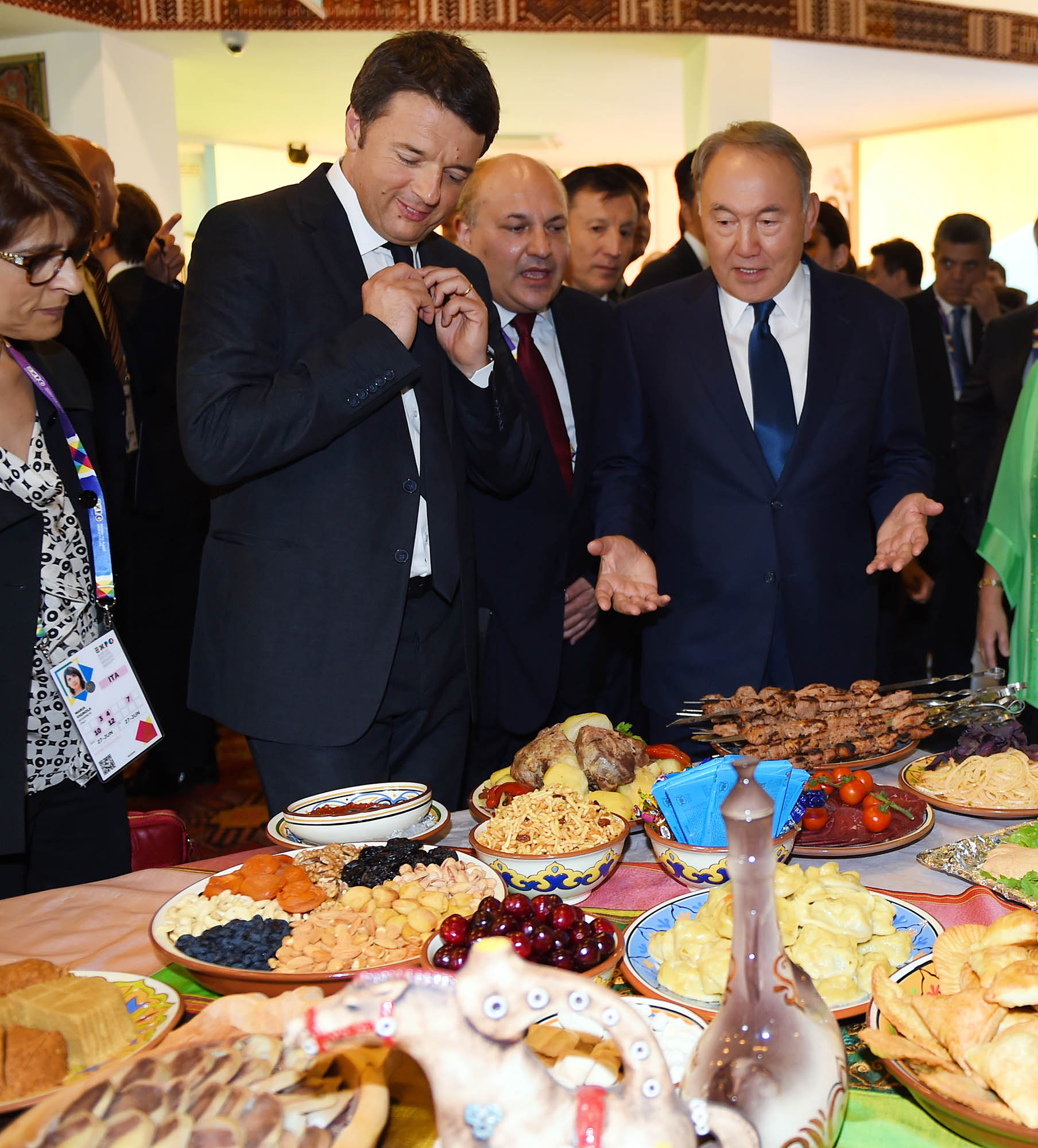 Вместе с премьер-министром Италии Маттео Ренци во время посещения казахстанского павильона на международной выставке EXPO-2015 в Милане. © akorda.kz