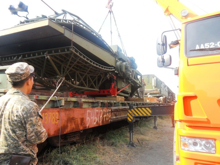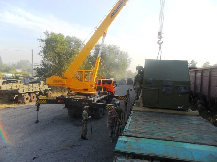 Казахстан получил от России пять зенитно-ракетных комплексов Во время разгрузки ЗРК. Фото предоставлены пресс-службой министерства обороны РК