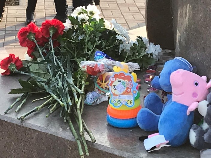 Собравшиеся почтили память минутой молчания, прочитали Коран. Пришедшие не могли сдержать слез. Молодые люди прочитали стихи, написанные в память о детях. На постаменте зажгли свечи, положили цветы и игрушки.