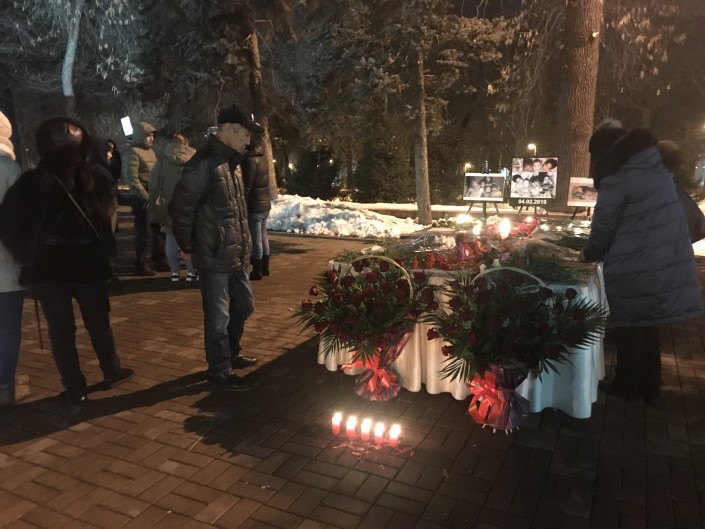 В Таразе жители тоже собрались, чтобы почтить память погибших сестер. Около 17.00 на аллее возле памятника влюбленным собрались горожане, представители мечети и русской православной церкви, представители партии и управлений акимата.